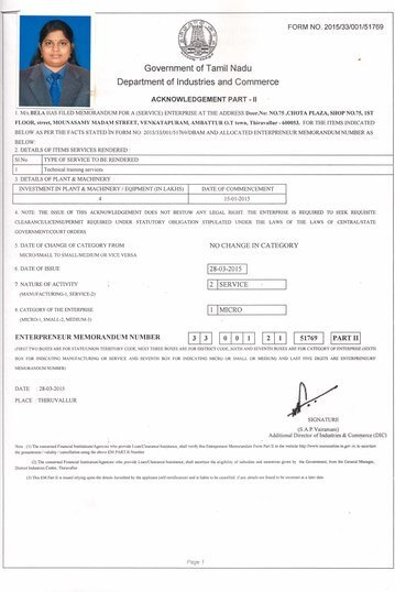 Address: No: 23/31, G6, Devi Meenakshi Homes, Oragadam Road, Venkatapuram, Ambattur, Chennai- 600053.